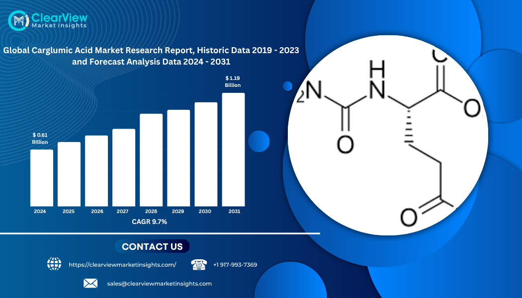 [Geneva, 27th June 2025] – Clearview Market Insights (CVMI) projects that the global carglumic acid market will grow from USD 610 million in 2024 to USD 1.19 billion by 2031, reflecting a CAGR of 9.7%. Rising newborn screening initiatives and increasing awareness of urea cycle disorders are driving demand.