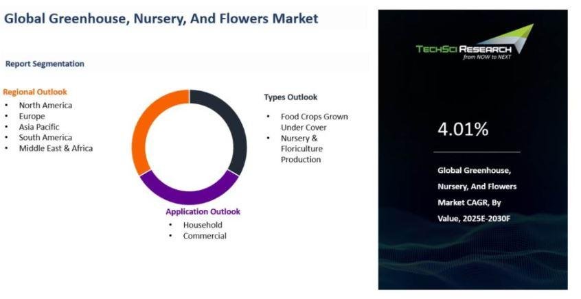 “Greenhouse Nursery And Flowers Market - Global Industry Size, Share, Trends, Opportunity, and Forecast, Segmented By Types (Food Crops Grown Under Cover, Nursery & Floriculture Production), By Application (Household, Commercial), By Region, and By Competition, 2020-2030F”, has evaluated the future growth potential of Global Greenhouse Nursery And Flowers Market and provides statistics & information on market size, structure and future market growth. The report intends to provide cutting-edge market intelligence and help decision makers take sound investment decisions. Besides, the report also identifies and analyzes the emerging trends along with essential drivers, challenges, and opportunities in Global Greenhouse Nursery And Flowers Market.