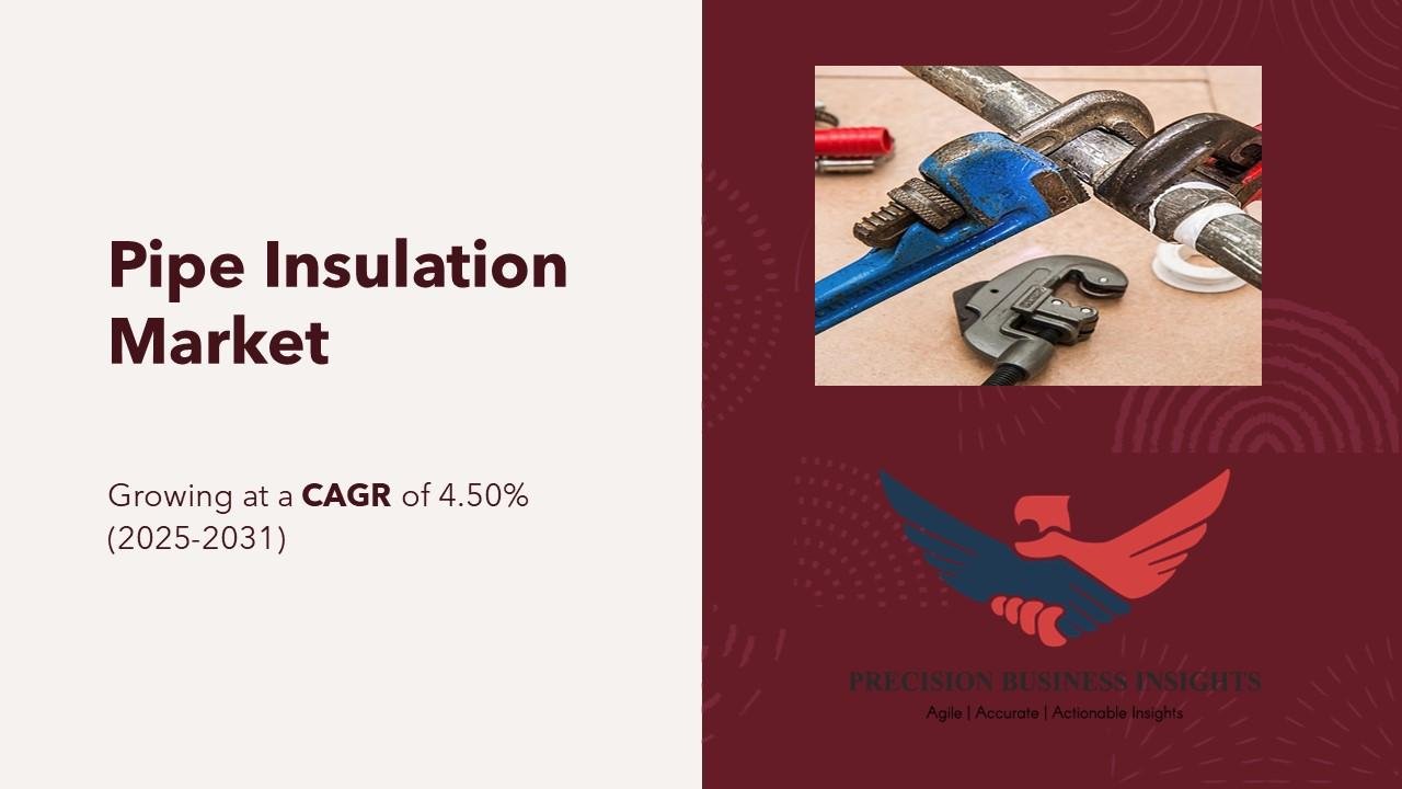 Precision Business Insights has published a report on the global Pipe Insulation Market, estimating its value at USD 9.7 Billion in 2024 and is expected to expand at a compound annual growth rate (CAGR) of 4.50% over the forecast period 2025-2031. The report explores the market growth and potential opportunities in the market industry. Additionally, it offers a detailed analysis of how these elements will affect market demand dynamics and market performance throughout the forecast period.