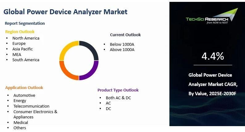 “Power Device Analyzer Market – Global Industry Size, Share, Trends, Opportunity, and Forecast, Segmented By Product Type (Both AC & DC, AC, DC), By Current (Below 1000A, Above 1000A), By Application (Automotive, Energy, Telecommunication, Consumer Electronics & Appliances, Medical, Others), By Region, By Competition, 2020-2030F” has evaluated the future growth potential of Power Device Analyzer Market and provides statistics & information on market size, structure, and future market growth. The report intends to provide cutting-edge market intelligence and help decision makers take sound investment decisions. Besides the report also identifies and analyzes the emerging trends along with essential drivers, challenges, and opportunities in Power Device Analyzer Market.