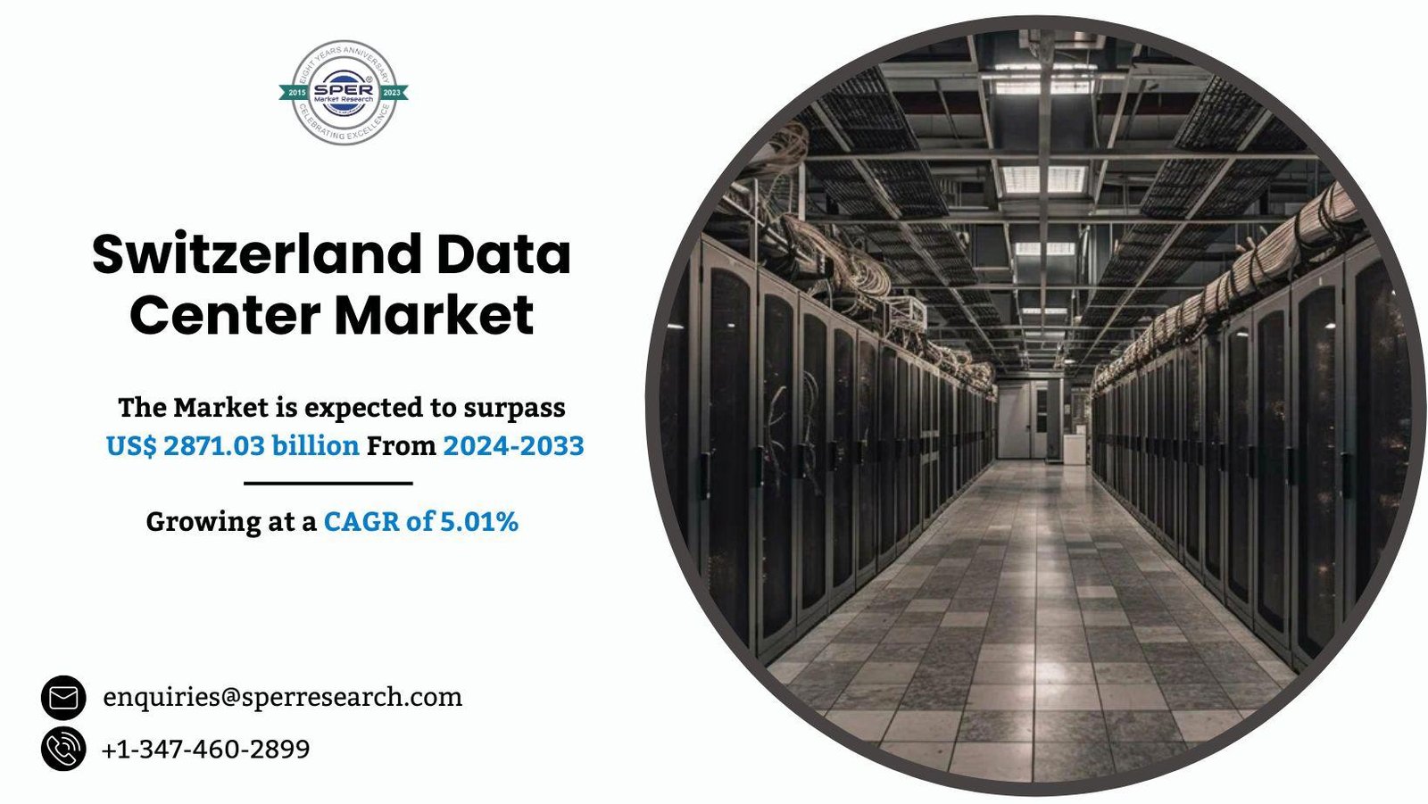 According to SPER market research, ‘Switzerland Data Center Market Size- By Data Center Size, By Tier Type, By Absorption, By Component- Regional Outlook, Competitive Strategies and Segment Forecast to 2033’ states that is estimated to reach USD 2871.03 billion by 2033 with a CAGR of 5.01%.