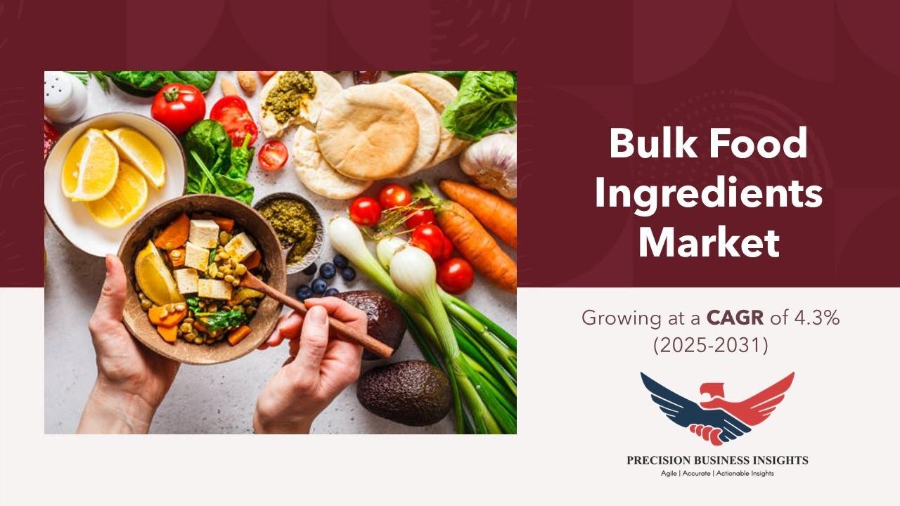 Precision Business Insights has published a report on the global Bulk Food Ingredients Market, estimating its value at USD 469.4 Billion in 2024 and is expected to expand at a compound annual growth rate (CAGR) of 4.3% over the forecast period 2025-2031. The report explores the market growth and potential opportunities in the market industry. Additionally, it offers a detailed analysis of how these elements will affect market demand dynamics and market performance throughout the forecast period.