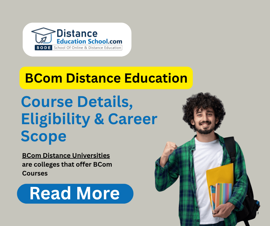 BCom distance education is a practical and flexible way to earn a commerce degree without attending regular college. With top BCom distance universities like IGNOU, SOL Delhi, IDOL Mumbai, Annamalai University, and KSOU, students have multiple options to pursue quality education at affordable fees.
