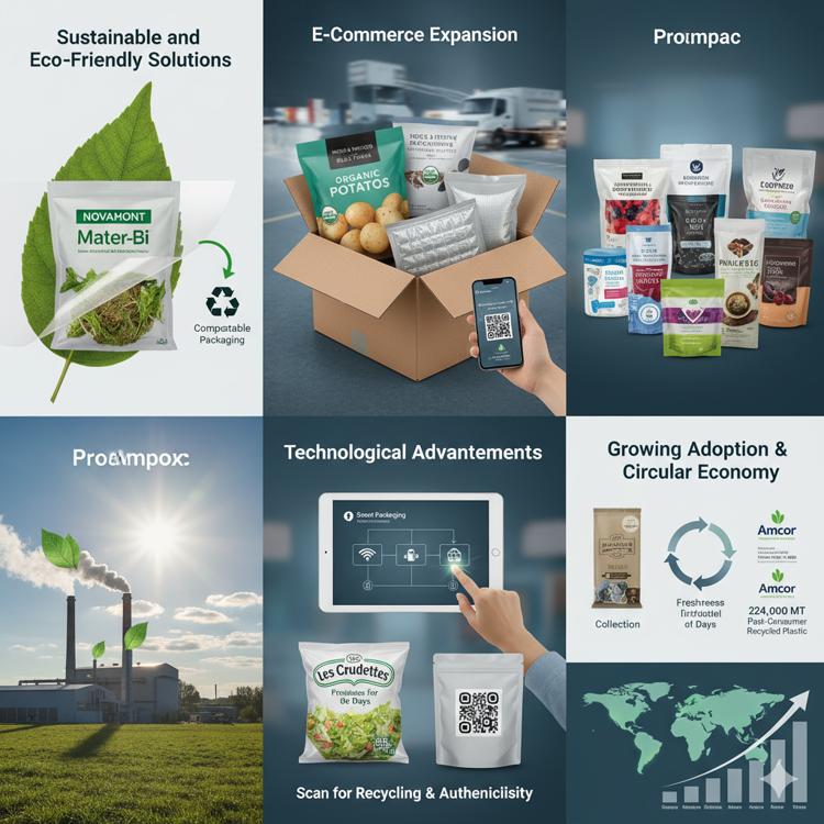 For instance, ProAmpac’s ProActive Recyclable RP-1000 fiber-based packaging, recognized with a Best in Class award at the 2025 PAC Global Awards, demonstrates high durability and seal integrity. It is utilized by Marks & Spencer for their Select Farms Organic potato range, underscoring the effectiveness of flexible packaging in e-commerce-driven markets.