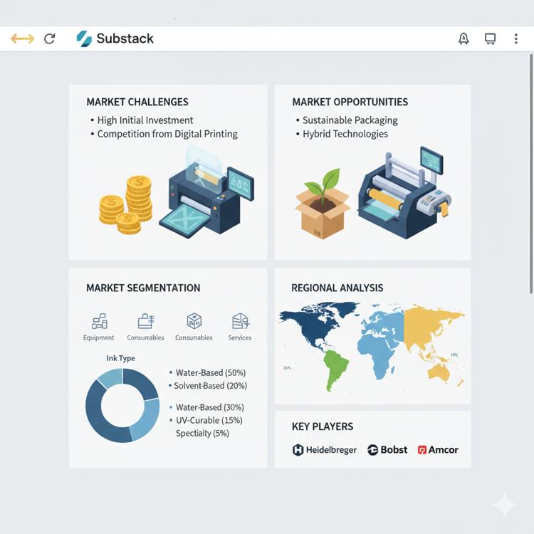 Industry example: Heidelberger Druckmaschinen AG introduced its Boardmaster flexo press in May 2023, achieving production speeds of up to 600 meters per minute with 90% press availability during continuous packaging runs. This highlights the combination of speed, precision, and automation driving the modern market.