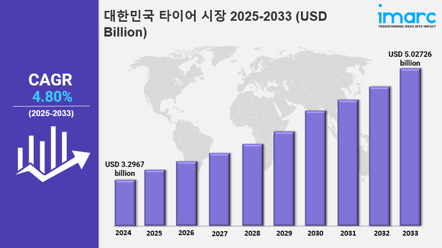 IMARC 그룹은 최근 "한국 타이어 시장 규모, 점유율, 추세 설계, 최종 용도, 차량 유형, 유통 채널, 계절, 지역 예측 분석(2025-2033")이라는 새로운 연구 연구를 발표했습니다. 보고서는 시장 동인, 세분화, 성장 기회, 동향, 경쟁 환경에 대한 상세한 분석을 제공하여 현재와 미래의 시장 시나리오를 이해합니다.